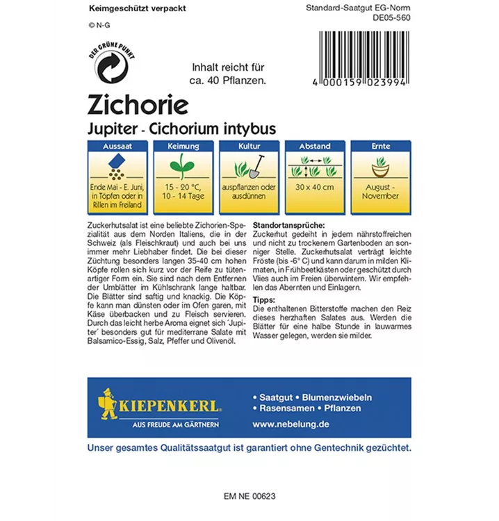 Besonders für den frühen Herbstanbau geeignet, mit Aussaat von Anfang Juni bis Anfang Juli. Jupiter bildet besonders lange, gut geschlossene Köpfe, die über einen langen Zeitraum geerntet werden können. Ersatz für die Sorte Pluto.<br>