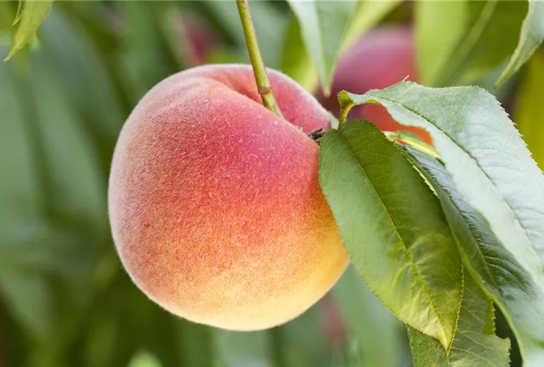Wer ein schmackhaftes und saftiges Obst im Sommer ernten und genießen möchte, der sollte sich für einen Pfirsichbaum entscheiden. Pfirsiche können direkt vom Baum gegessen werden, lassen sich aber auch gut und vielfältig verarbeiten wie zum Beispiel als Saft, Marmelade oder als Kuchenbelag. Der Pfirsichbaum stammt ursprünglich aus Asien, ist aber bereits seit dem Mittelalter nicht nur im gesamten Orient, sondern auch im Mittelmeerraum als begehrtes Obstgehölz verbreitet. Seit dem 19. Jahrhundert sind Pfirsichbäume auch zunehmend in den Gärten Mitteleuropas zu finden. Bei den ebenfalls beliebten Nektarinen, die eine glatte Schale haben, handelt es sich um eine Variante des Pfirsichs. Wer einen sonnigen Platz im Garten hat, der wird mit etwas Pflege viele leckere Pfirsiche ernten können.