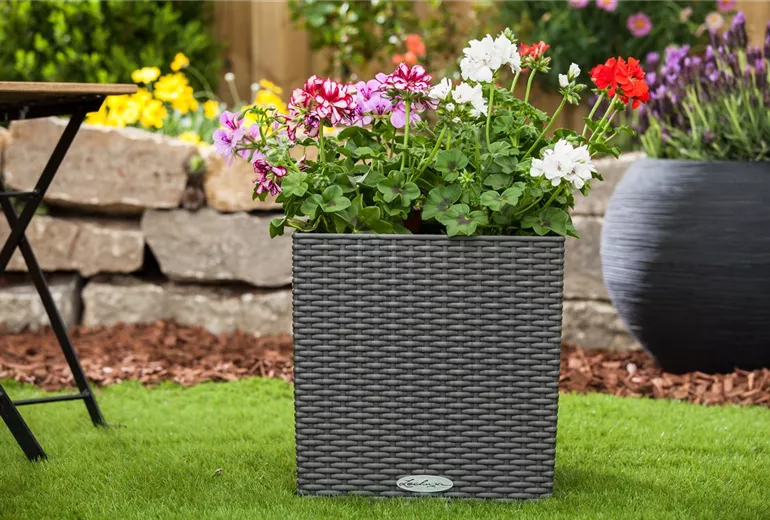 Ein typisches Beispiel für Tiefwurzler, auch Pfahlwurzler genannt, sind Rosen. Viele von ihnen führen ein kümmerliches Dasein, weil ihre Kübel zu flach sind und ihre Wurzeln am Wachstum in die Tiefe gehindert werden. Pflanzgefäße für Pfahlwurzler müssen nicht groß, aber hoch sein. Sehr gut passen etwa die kelchförmigen Pflanzgefäße aus Terrakotta, die häufig in mediterranen Gärten zu finden sind. Wer es lieber moderner mag, für den gibt es heute eine breite Auswahl an quader- und zylinderförmigen Gefäßen aus den verschiedensten Materialien und für jeden Geschmack.