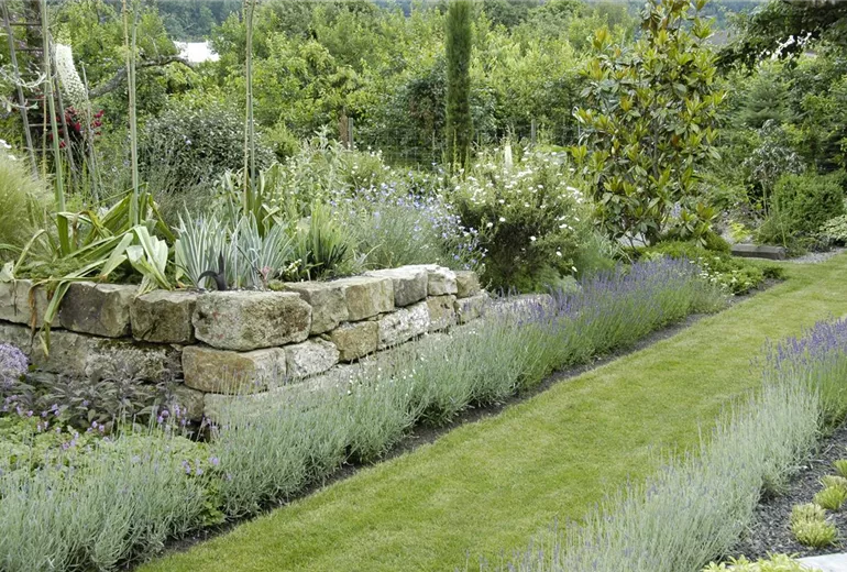 Für eine Gartenfläche mit eher trockenem, sandigem Boden, auf den täglich mehrere Stunden die Sonne scheint, gibt es zahlreiche Möglichkeiten der Gartengestaltung mit Gartenpflanzen. Hier bietet sich das Anlegen einer Kräuterspirale mit mediterranen Kräutern oder ein Steingarten im asiatisch anmutenden Zen-Stil an. Ein Olivenbaum fühlt sich ebenfalls in eher nährstoffarmer, trockener Erde wohl, besonders, wenn er ausreichend Sonnenstrahlung ausgesetzt ist. Eine kleine Sonnenecke lässt sich wunderbar mit duftenden Lavendelpflanzen einrahmen. Diese sollten nur nicht zu eng beieinander gepflanzt werden, da der Lavendel gern eine kompakte Wuchsform entwickelt. Auch Quendel fühlt sich in einem sonnigen Steingarten wohl und wirkt zwischen größere Steine gepflanzt besonders natürlich und dekorativ. Gartengestaltung mit Gartenpflanzen darf also ruhig auch einmal einfach sein.